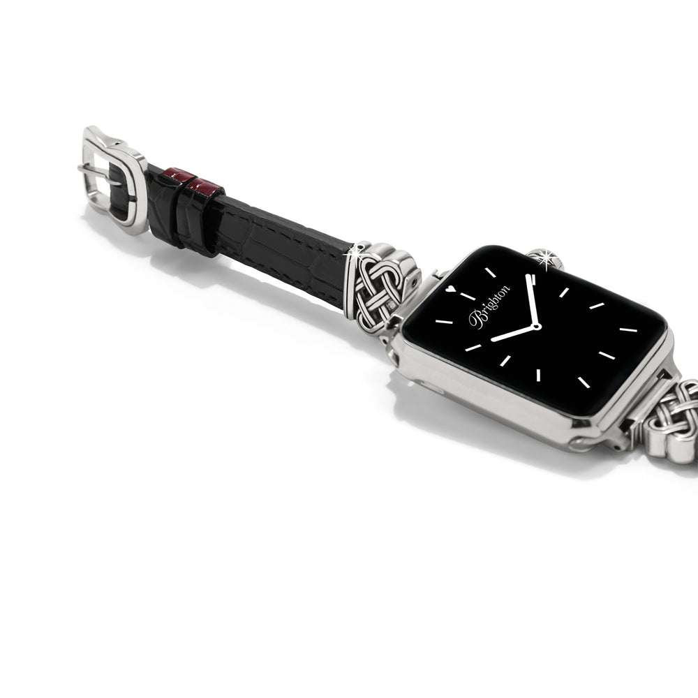 Celtic-inspired knots, symbolizing endless friendship and love, make this silver-and-leather reversible smart watch band a must-have for your Apple Watch®. The band reverses colors (black or brown), so you have two looks in one! It fits 38 mm case size and larger.
