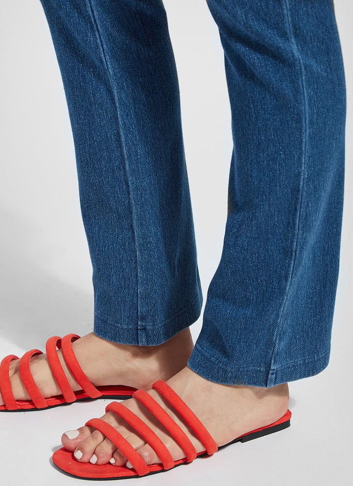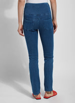 Complete with strategically placed back pockets and slimming concealed waistband, the high-waisted Denim Straight Leg delivers stretchy all-day wear without sagging thanks to its 4-way stretch Knit Denim construction.
