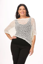 Front image of Papa Fashions black knit shrug. 3/4 sleeve lightweight top.