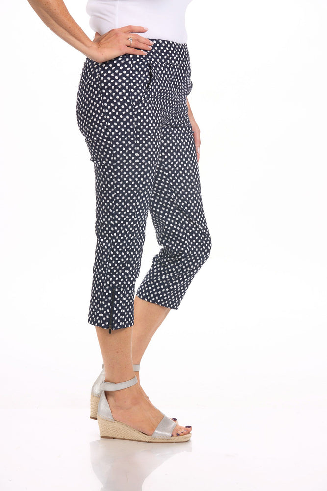 These bottoms are a classic capri that is figure flattering and very versatile. You'll find yourself wanting a pair in every color - lucky for you, we've got you covered with several essential colors and prints. Featuring front and back pockets, a pull on waistband and zipper detail along hem.