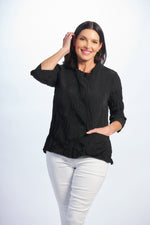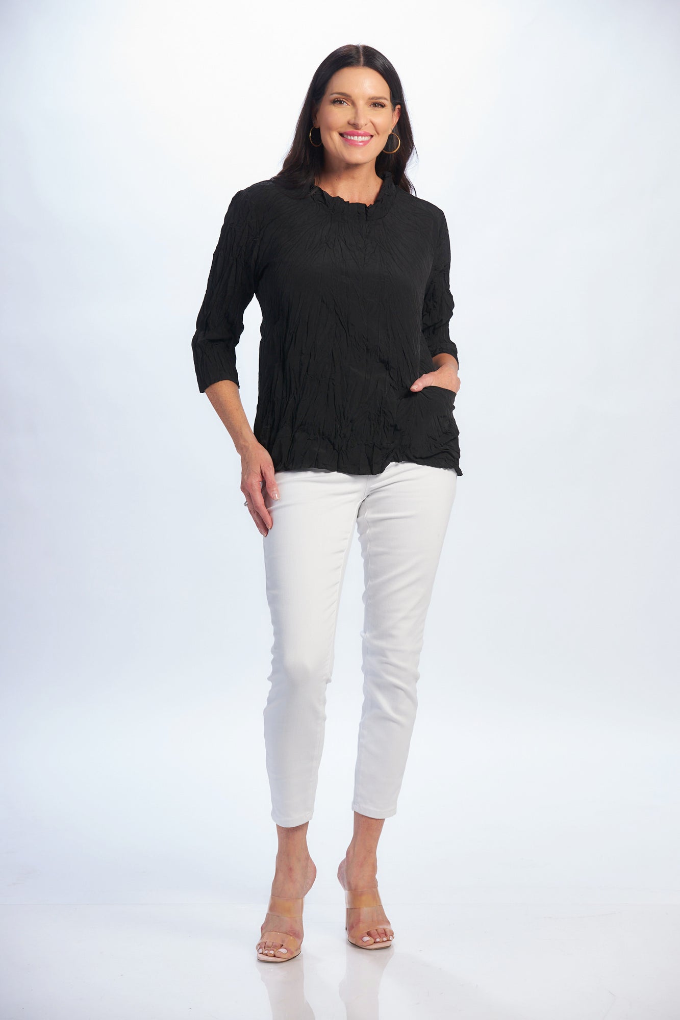 Add this crinkle top to your basic collection today. It is an effortless style that can be dressed up or dressed down. The crinkle material makes it easy to pack without worrying about wrinkles.
