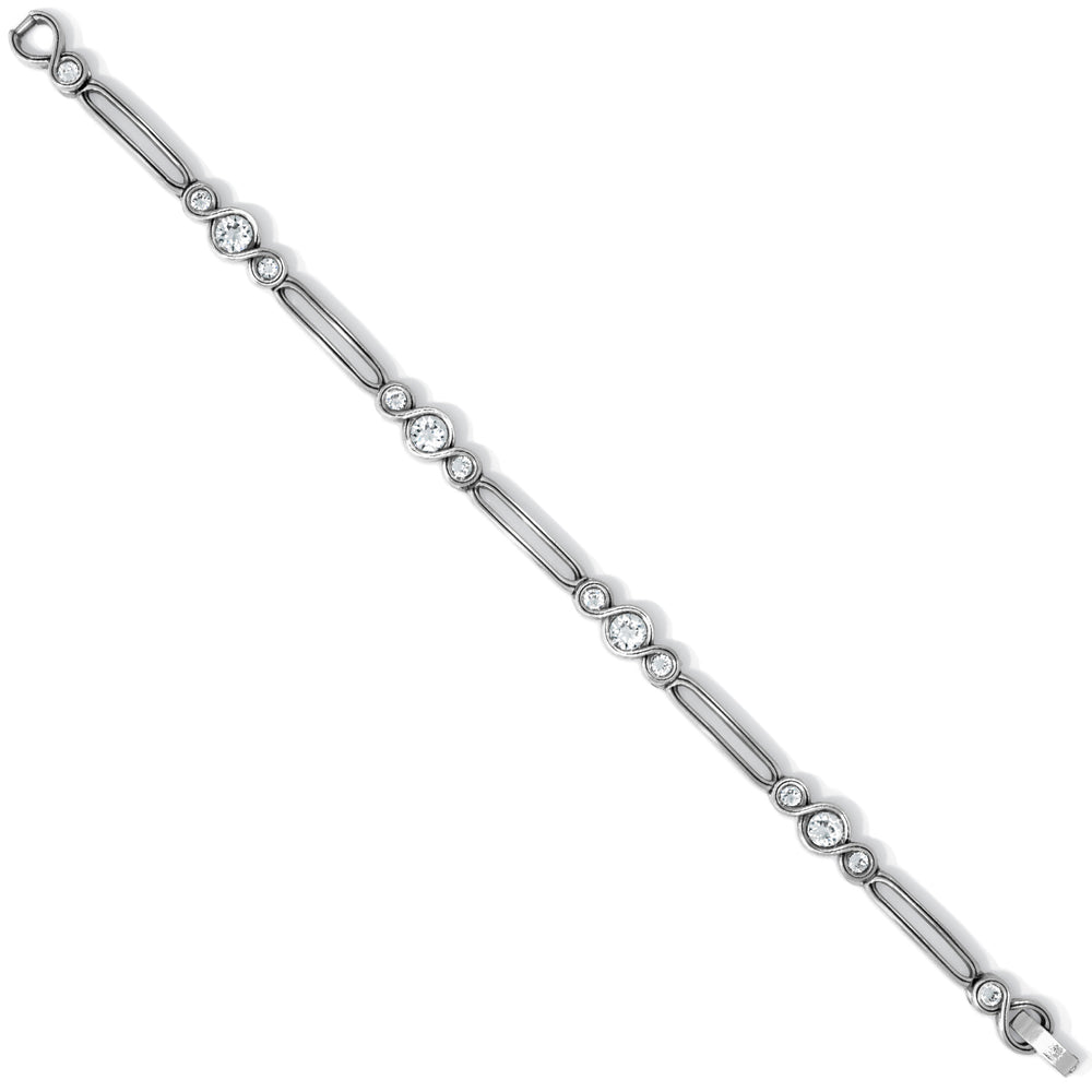 Simple lines intertwine in a subtle, repeating infinity-shaped frame, all to show off Swarovski crystals. When you wear this architecture-inspired bracelet, the look will be both modern and classic.