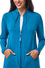 Coolibar's softest beach cover-up redesigned to flatter your figure. They moved the pockets to the front and sewn-in a two-way zipper so you can let it hang comfortably loose either at neck or legs. With a lightweight flowing design, this Cabana Hoodie is perfect for shoreline strolls.