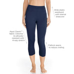 Providing sun protection to your legs and a figure-flattering fit, these Deep Water Swim Capris are ideal for any water activity. Coolibar's swim capris for women are a great alternative to swim shorts for more sun protection.